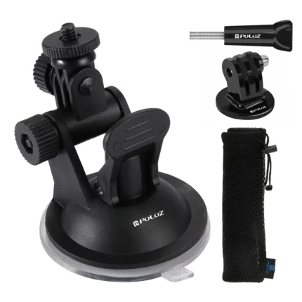 PULUZ Car Suction Cup Mount with Screw & Tripod Mount Adapter & Storage Bag for GoPro, Insta360, DJI and Other Action Cameras