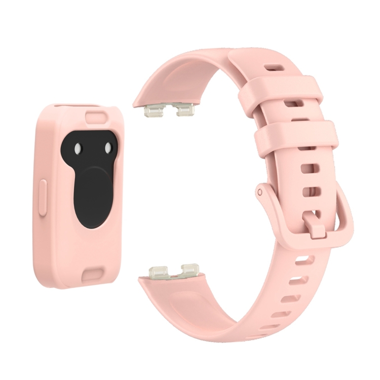 For Huawei Band 8 Silicone Protective Case + Silicone Watch Band Kit(Pink)