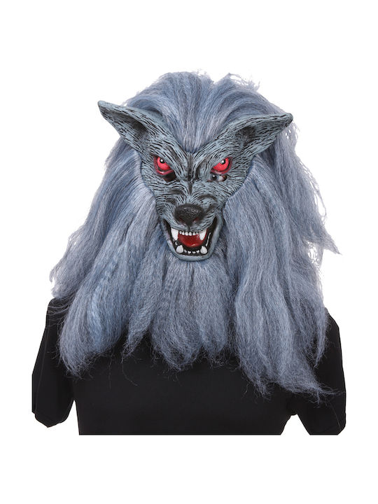 Αποκριάτικη Μάσκα Προσώπου Latex Λυκάνθρωπος με Μαλλιά Γκρι