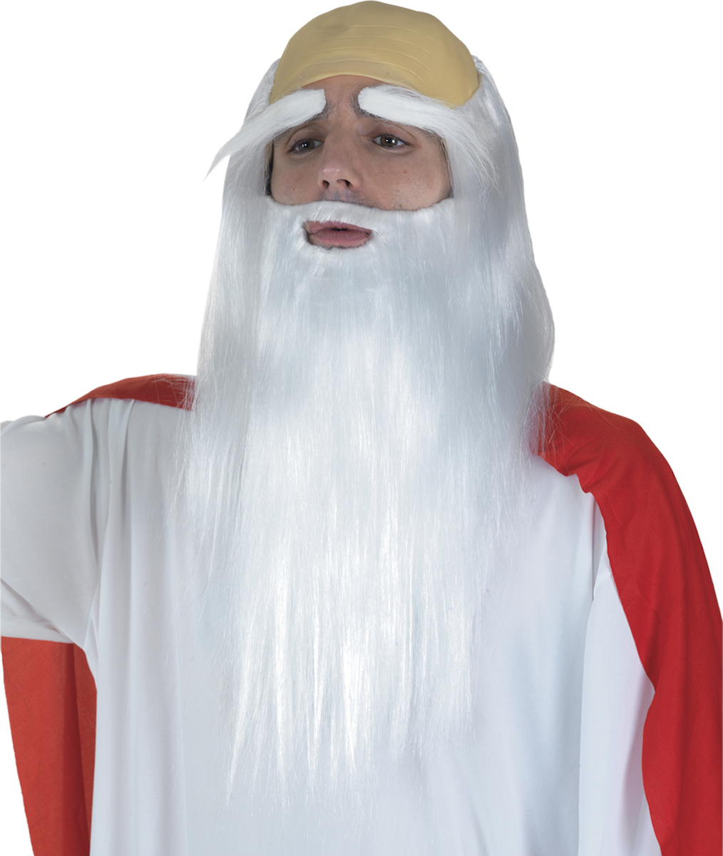 Αποκριάτικη Περούκα Ίσια Λευκή Πανοραμίξ με Μούσι και Φρύδια