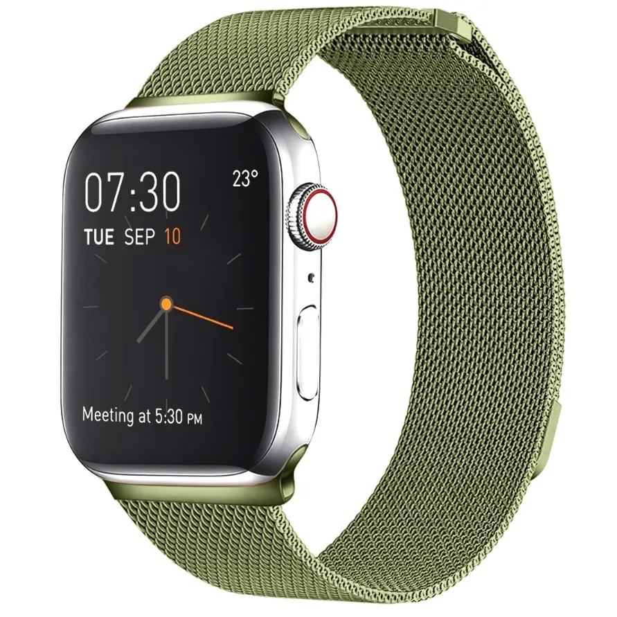 Μπάντα ρολογιού από μαγνητικό ανοξείδωτο ατσάλι Milanese Loop για Apple Watch Ultra 49mm&Watch Ultra 2 49mm / Series 9&8&7 45mm / SE 3&SE 2&6&SE&5&4 44mm / 3&2&1 42mm (Army Green)