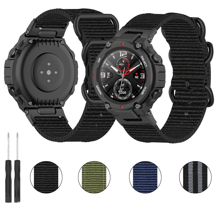 For Amazfit T-Rex / T-Rex Pro / Ares Three-ring Black Buckle Nylon Watch Band(Black)