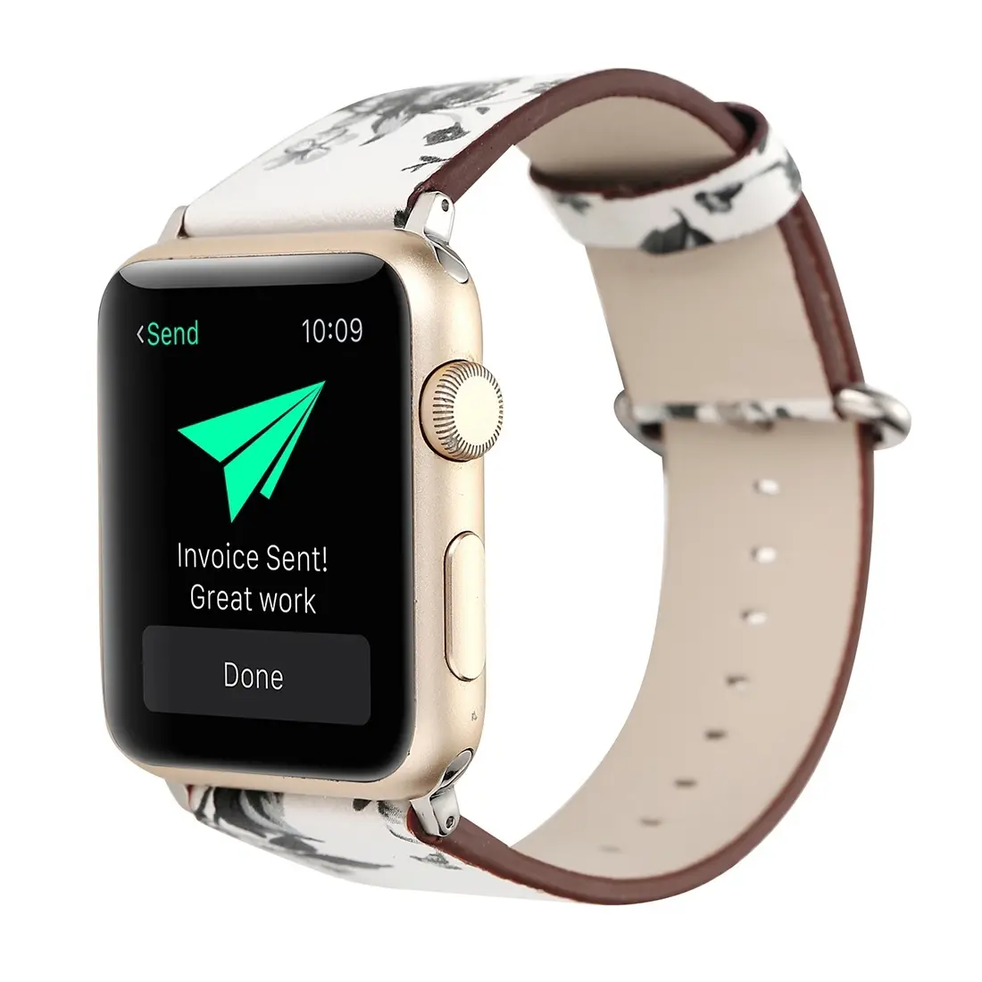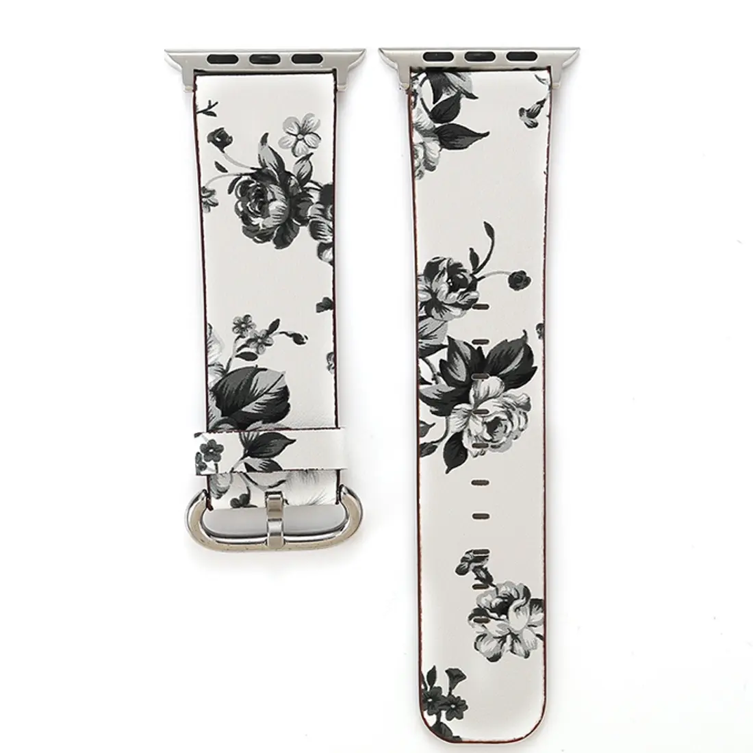 For Apple Watch Ultra 49mm&Watch Ultra 2 49mm / Series 9&8&7 45mm / SE 3&SE 2&6&SE&5&4 44mm / 3&2&1 42mm Fashion Pastoralism Style Little Floral Pattern Women Watch Leather Watch Band (WHITE)