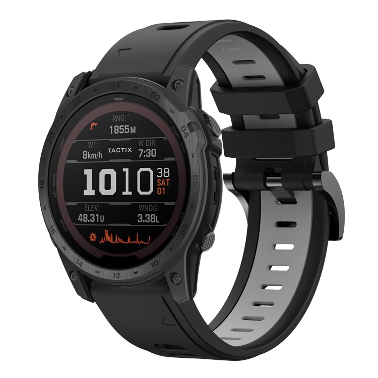 For Garmin TACTIX 7 / 7Pro 26mm Two-Color Sports Silicone Watch Band(Black+Grey)