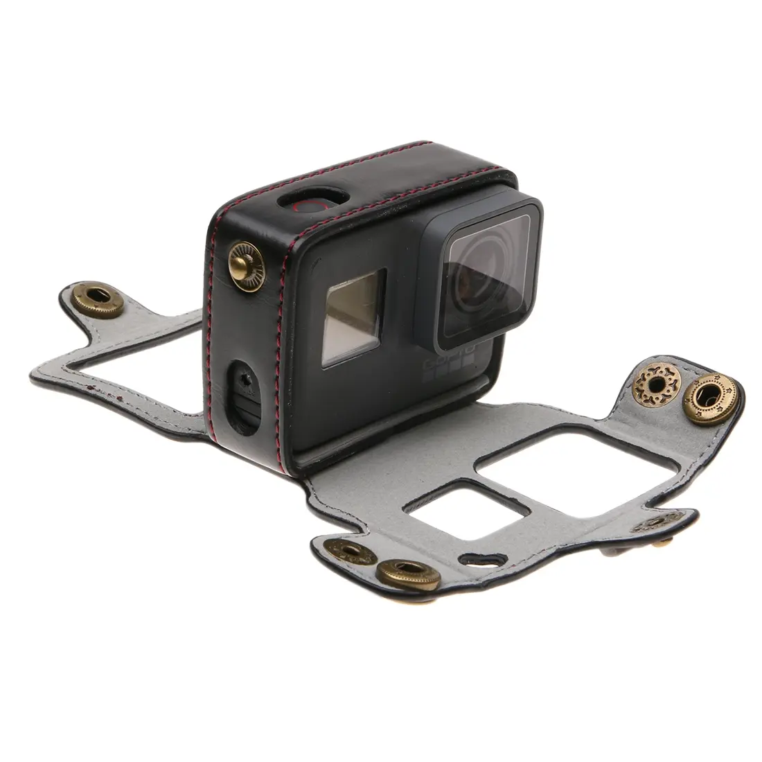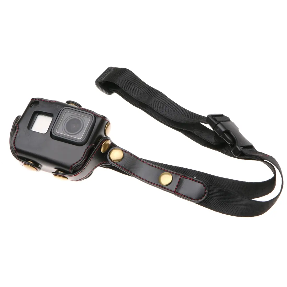 For GoPro HERO7 Black /6 /5 PU Leather Housing Case with Neck Strap & Buttons(Black)