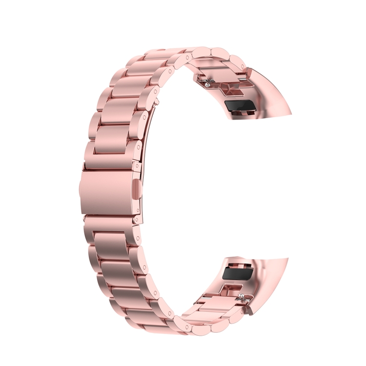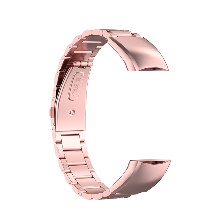 For Huawei Honor Band 4 (CRS-B19) / Honor Band 5 (CRS-B19S) Three Beads Steel Wrist Strap Watchband(Rose Pink)