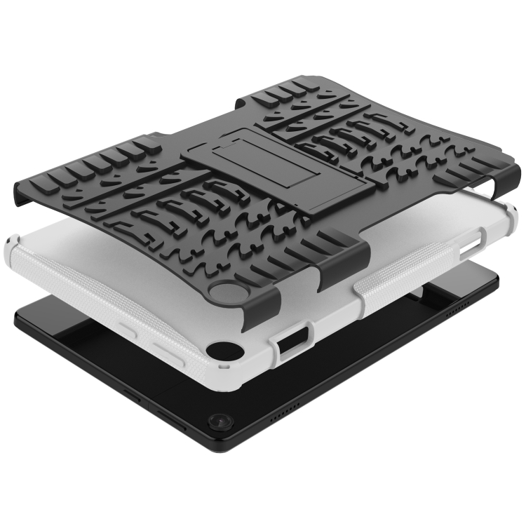 For Lenovo Tab M10 3rd Gen Tire Texture TPU + PC Tablet Case with Holder(White)