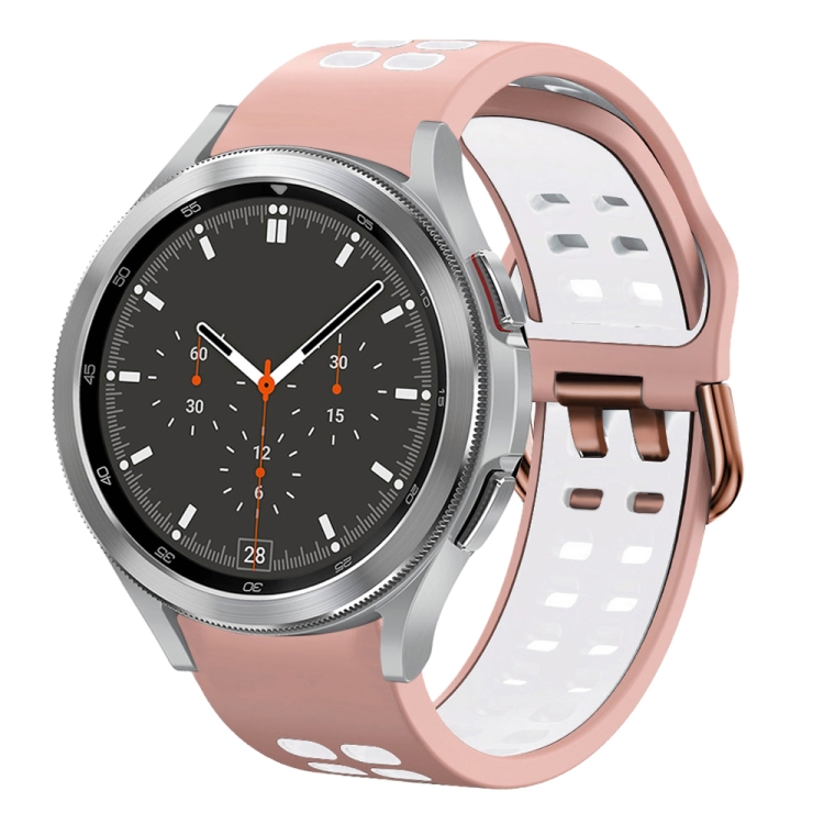 For Samsung Galaxy Watch 4 Classic 46mm 20mm Breathable Two-Color Silicone Watch Band(Pink+White)