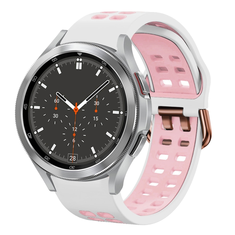 For Samsung Galaxy Watch 4 Classic 46mm 20mm Breathable Two-Color Silicone Watch Band(White+Pink)