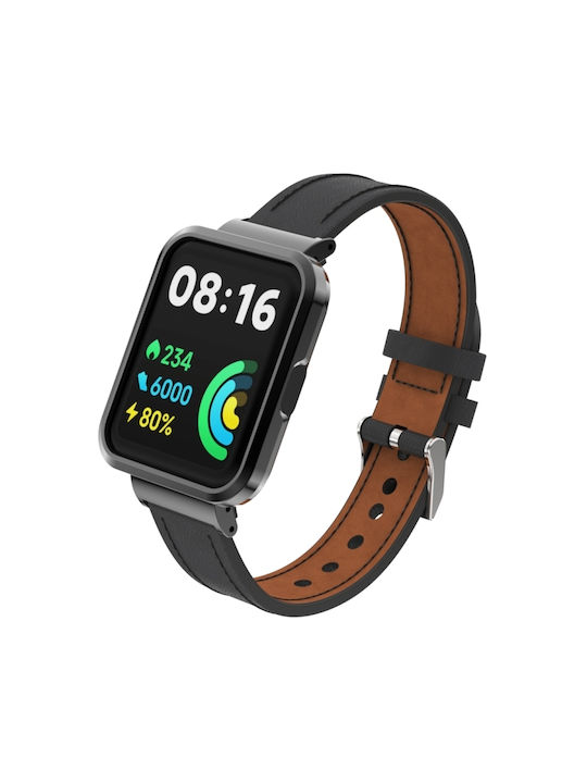 Για το Xiaomi Redmi Watch 2 Lite Γνήσια Δερμάτινη Μεταλλική θήκη Ενσωματωμένη ζώνη ρολογιού (Μαύρη)