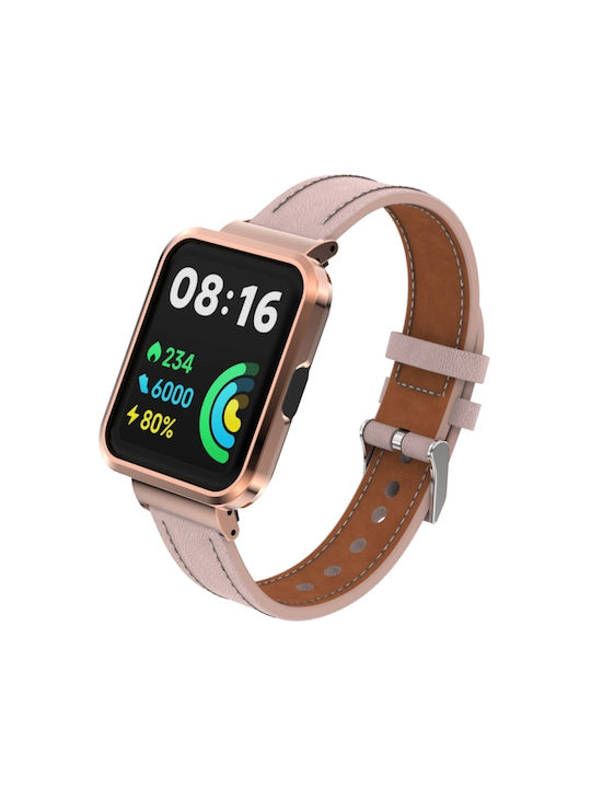 Για το Xiaomi Redmi Watch 2 Lite Γνήσια Δερμάτινη Μεταλλική Θήκη Ενσωματωμένη ζώνη ρολογιού (ανοιχτό ροζ)