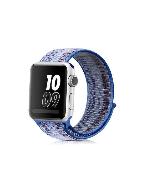 Για Apple Watch Series 7 41mm / 6 & SE & 5 & 4 40mm / 3 & 2 & 1 38mm Nylon Loop Watch Band (Striped Lake Blue)
