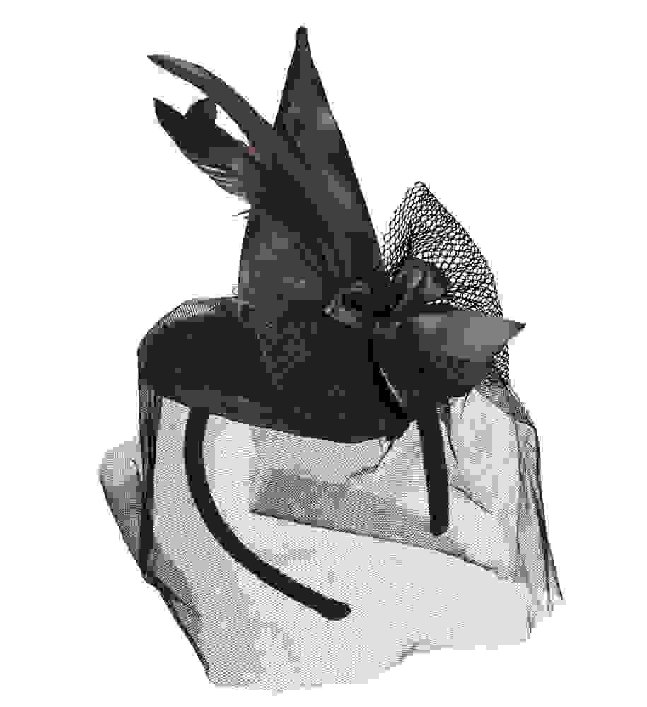 Μίνι Καπέλο Μάγισσας Με Φτερά & Τούλι