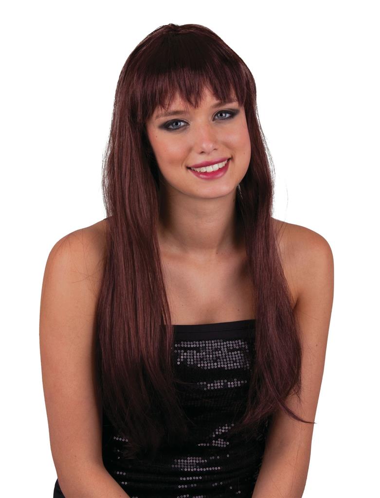 Περούκα Μακριά Καστανή Με Αφέλειες