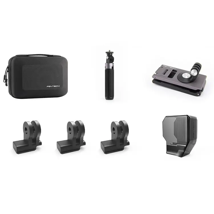 1. The set includes: carrying case; tripod selfie stick; sports camera strap mount; OSMO Pocket data port to universal interface; SMO Pocket gimbal protection cover
