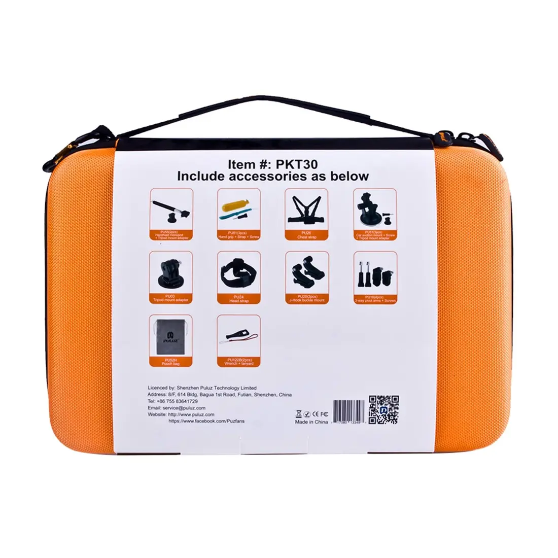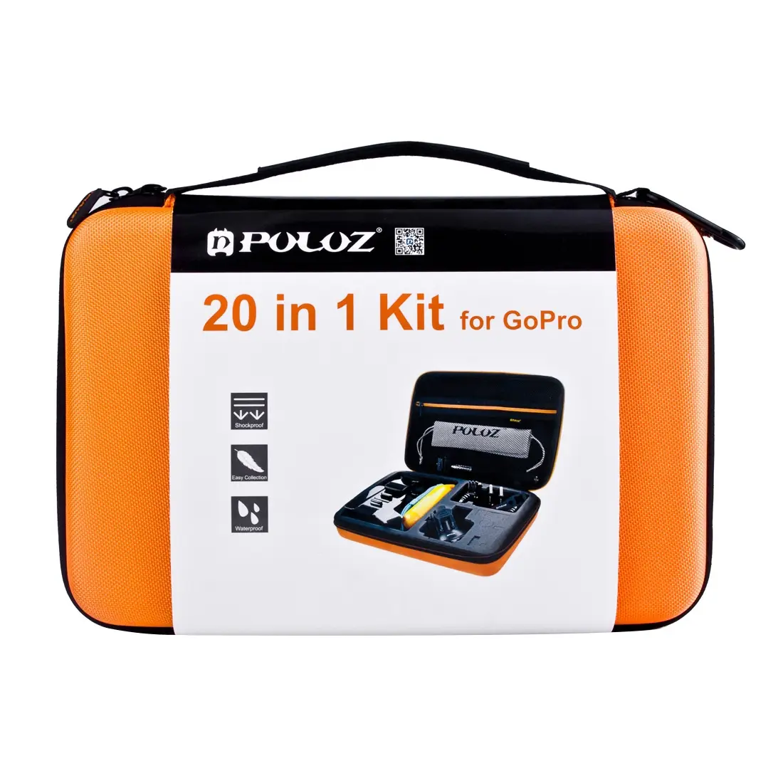 PULUZ 20 in 1 Accessories Combo Kits with Orange EVA Case (Chest Strap + Head Strap + Suction Cup Mount + 3-Way Pivot Arm + J-Hook Buckles + Extendable Monopod + Tripod Adapter + Bobber Hand Grip + Storage Bag + Wrench) for GoPro, Insta360, DJI and Other Action Cameras
