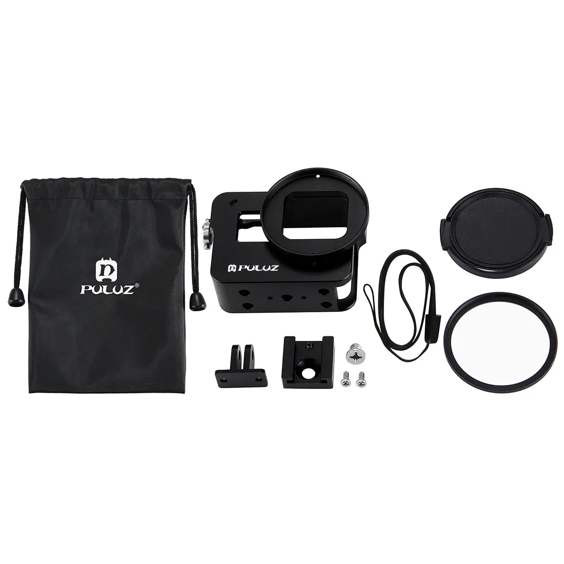 PULUZ Housing Shell CNC Aluminum Alloy Protective Cage with 52mm UV Lens for GoPro HERO(2018) /7 Black /6 /5(Black)