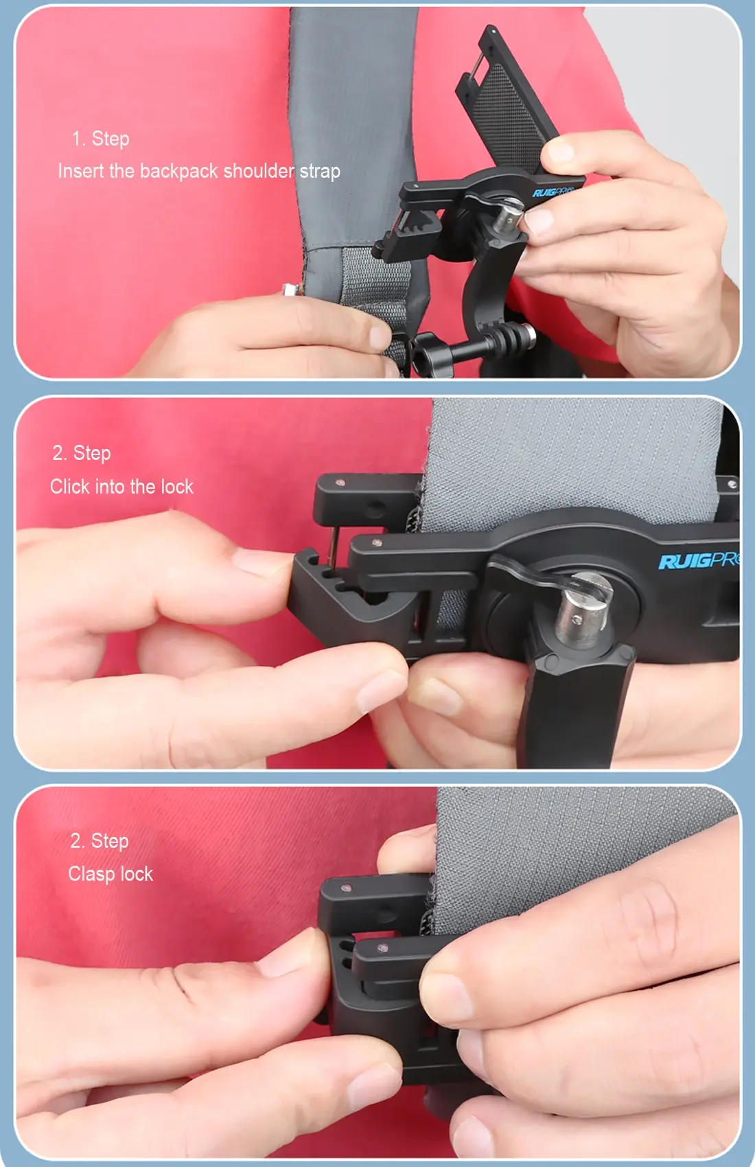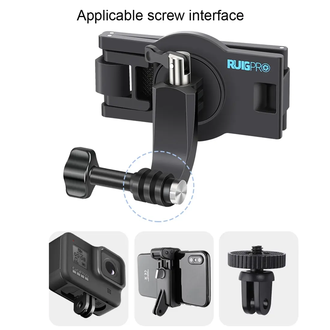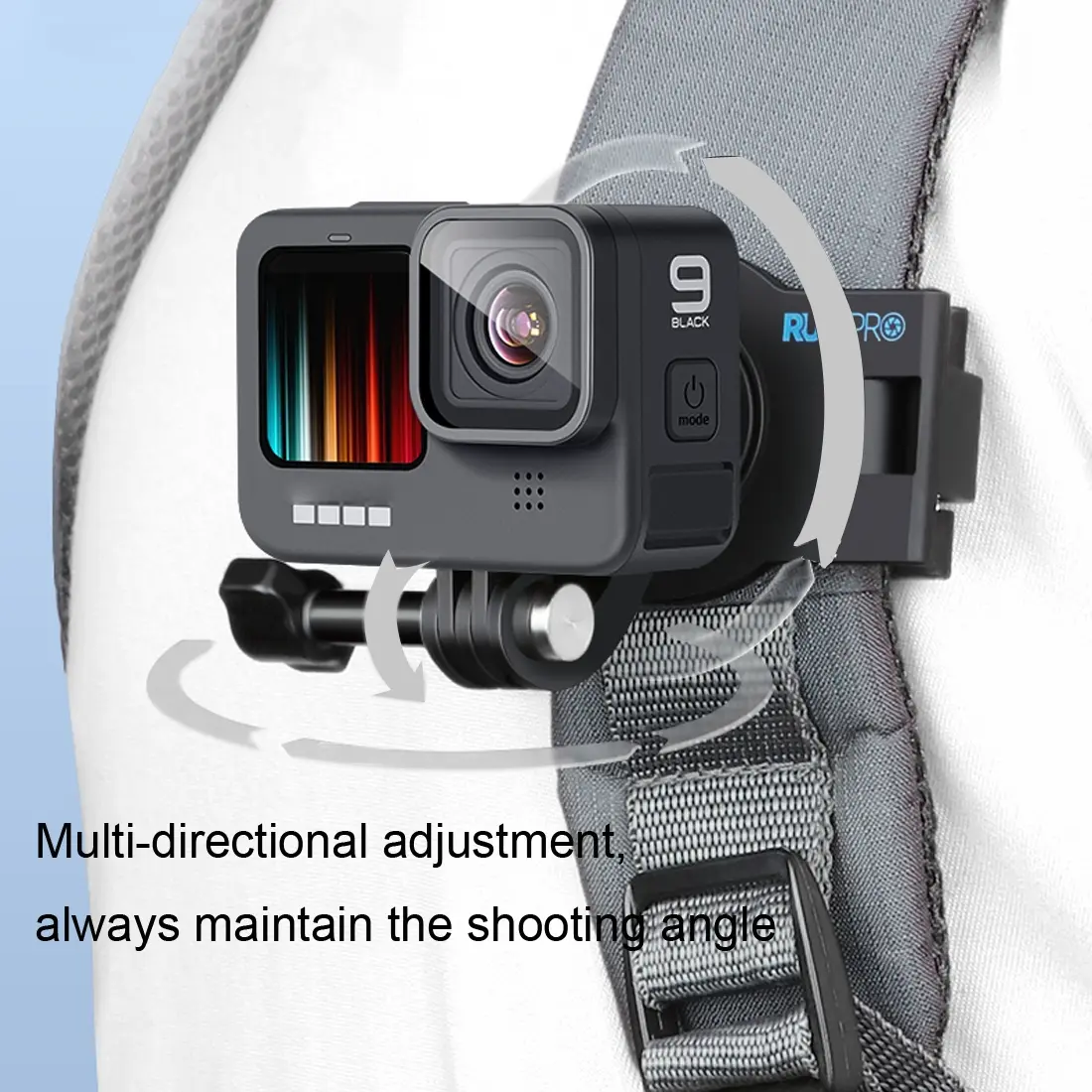 RUIGPRO 360 Degree Rotating Quick Release Strap Mount Shoulder Backpack Mount for GoPro, Insta360, DJI and Other Action Cameras(Black)