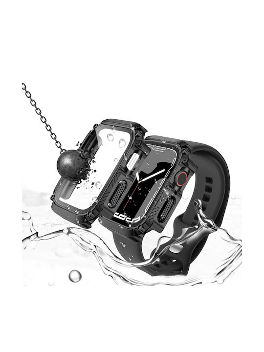 Screen Tempered Glass Film Armor Waterproof Watch Case For Apple Watch Series 8&7 45mm(Black)