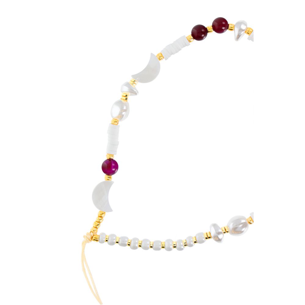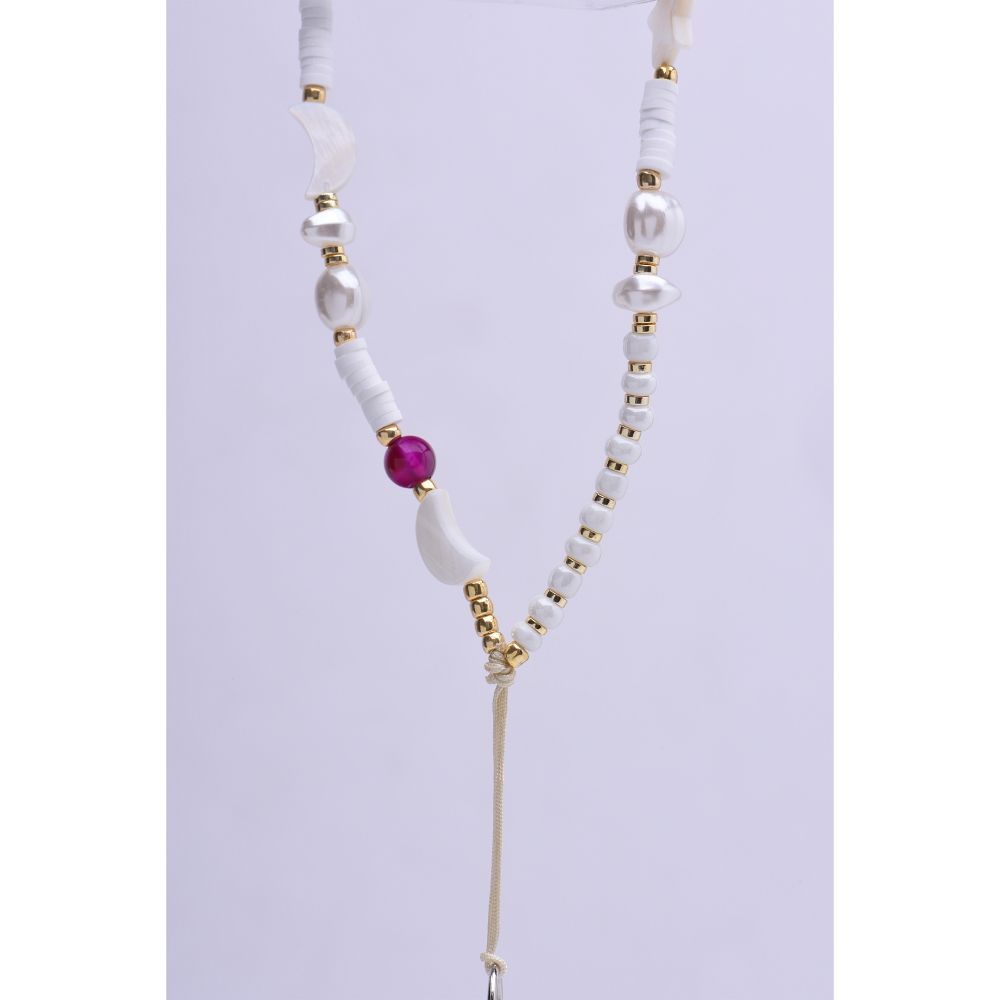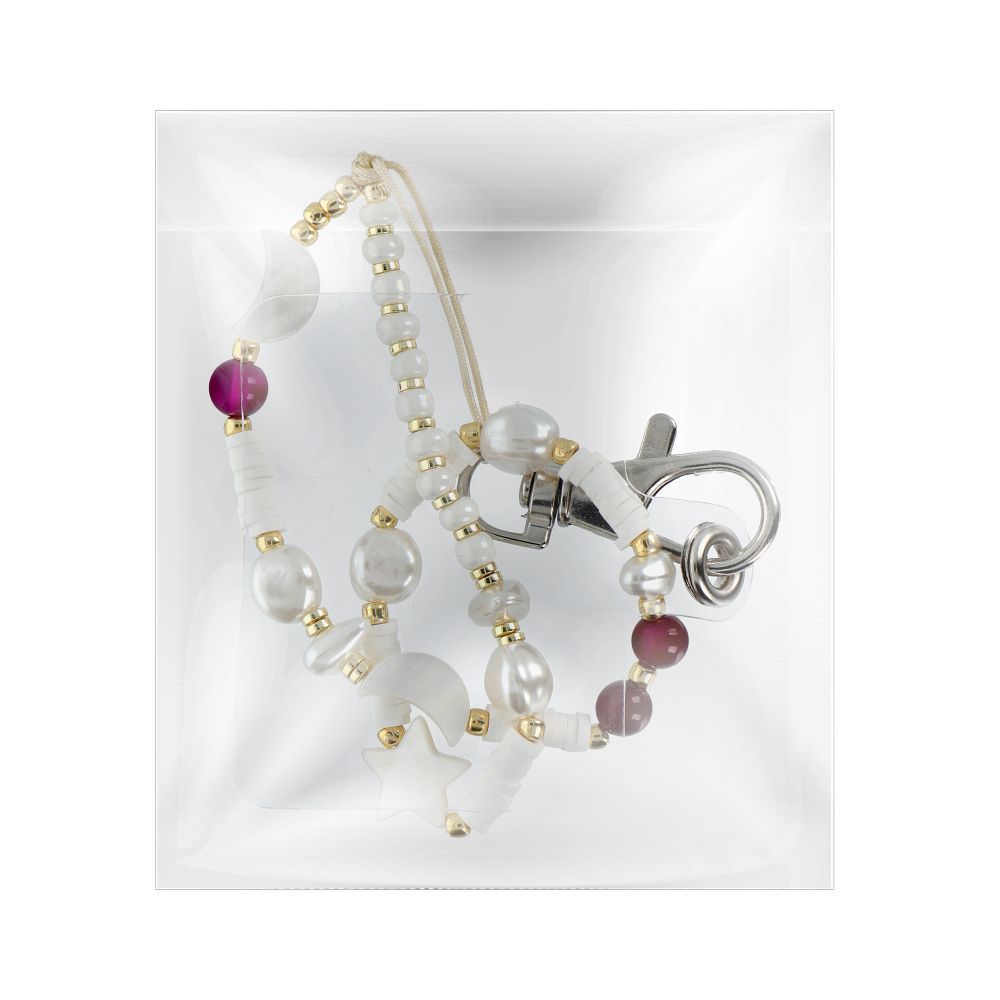 SHELLS μενταγιόν για το τηλέφωνο / μήκος σχοινιού 44cm (22cm στη θηλιά) / για το χέρι – λευκό-βιολετί