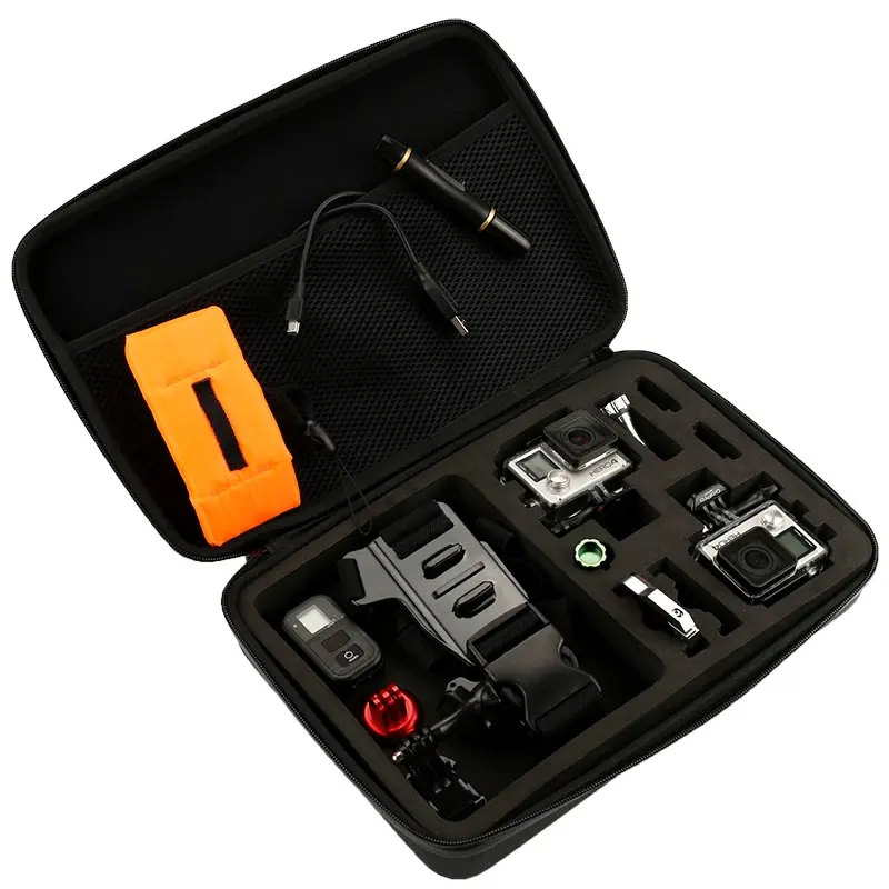 8. Portable box is good shaped compartments for a camera, outer housing, and accessories
