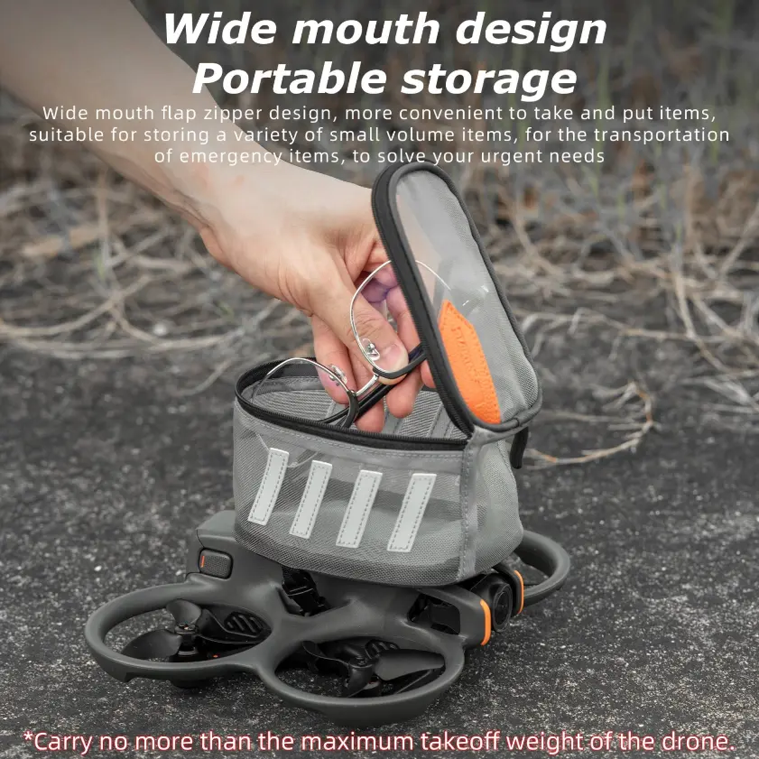 1. Compatible with multiple models. This small backpack is suitable for DJI Mavic, Air, and Avata series models. It fits the back of the aircraft very well, does not hinder the rotation of the propellers, and does not affect the flight;