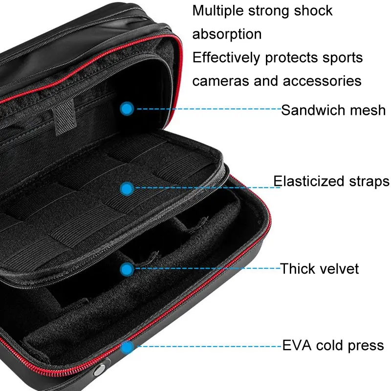 5. Multiple strong shock absorption, effectively protect the sports camera and its accessories, etc.
